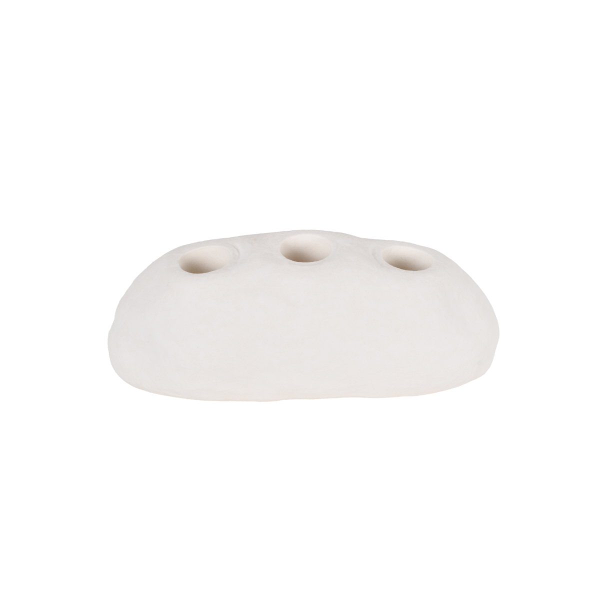 O castiçal em cerâmica branca é uma peça leve e sofisticada, perfeita para composições minimalistas ou ambientes com uma estética clean. Seu design versátil permite o uso com ou sem vela, funcionando como objeto decorativo por si só.