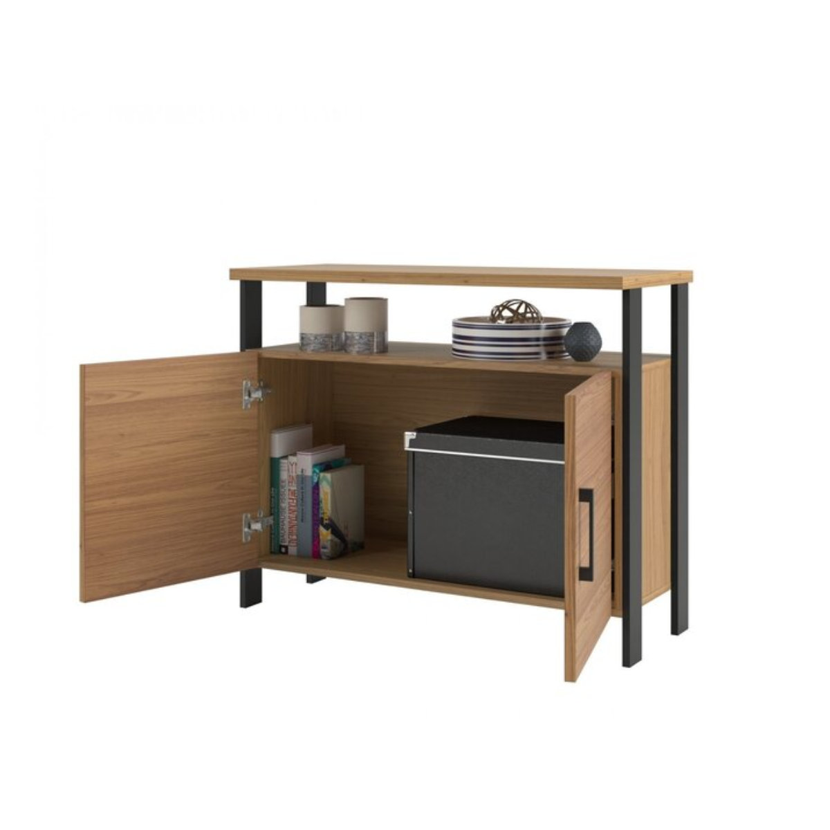 Com design compacto e toque urbano, o balcão industrial com 2 portas é ideal para quem busca funcionalidade aliada ao visual moderno. A combinação entre a estrutura preta fosca e o acabamento amadeirado freijó reforça o estilo industrial, valorizando a decoração com personalidade.