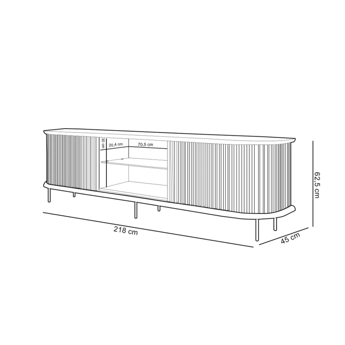 • 2 portas deslizantes com acabamento ripado – organização com estilo