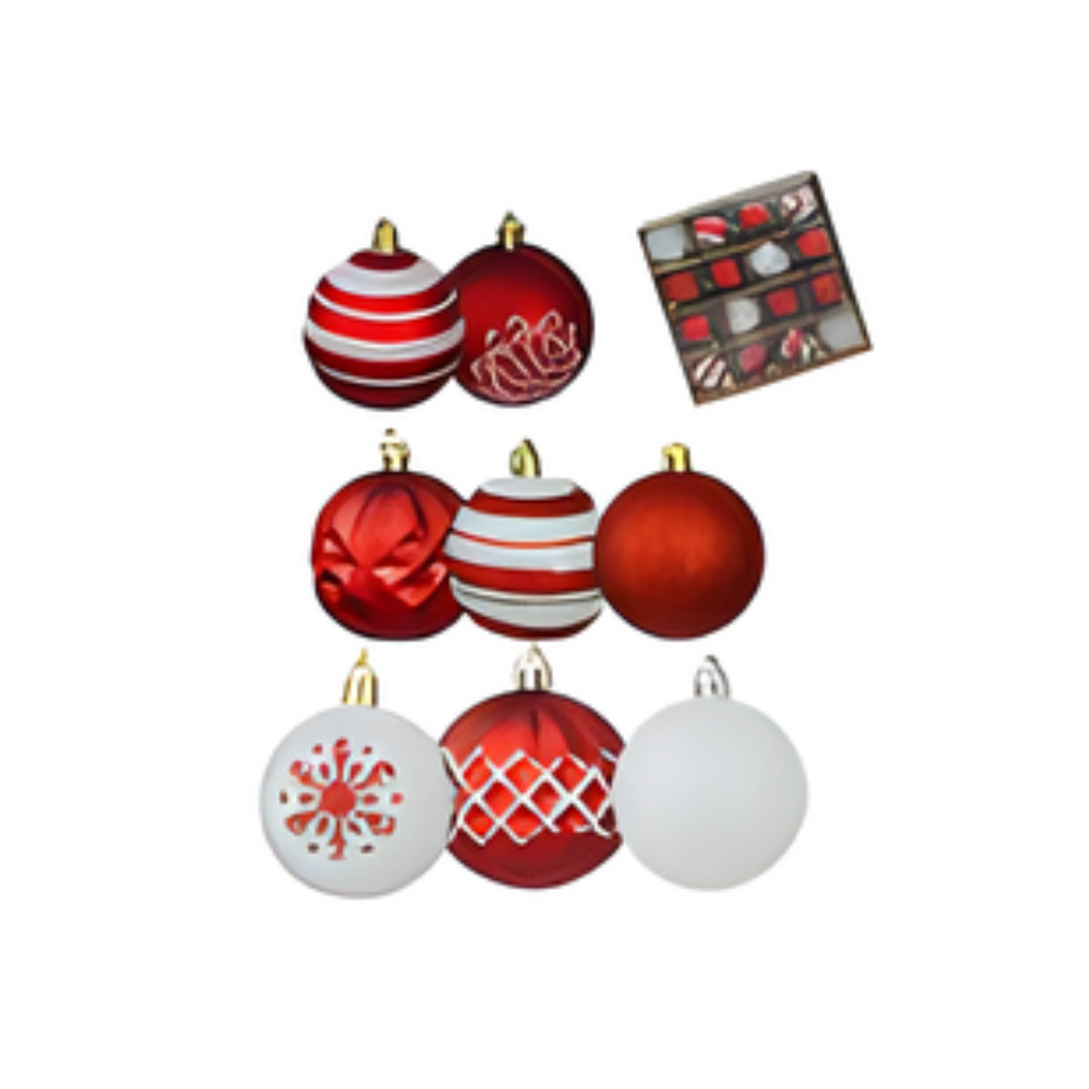 CAIXA BOLA NATALINA VERMELHA E BRANCA 16UN - 6CM