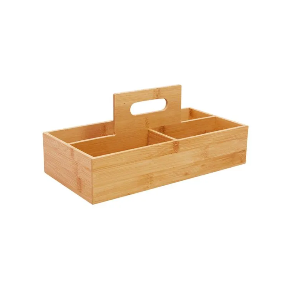Seu formato conta com divisórias internas que permitem separar objetos de forma organizada, além da alça central recortada, que garante praticidade no transporte. Versátil, pode ser usada na cozinha para talheres e temperos, no banheiro para cosméticos, ou ainda em áreas de serviço e escritório para organizar pequenos itens.
