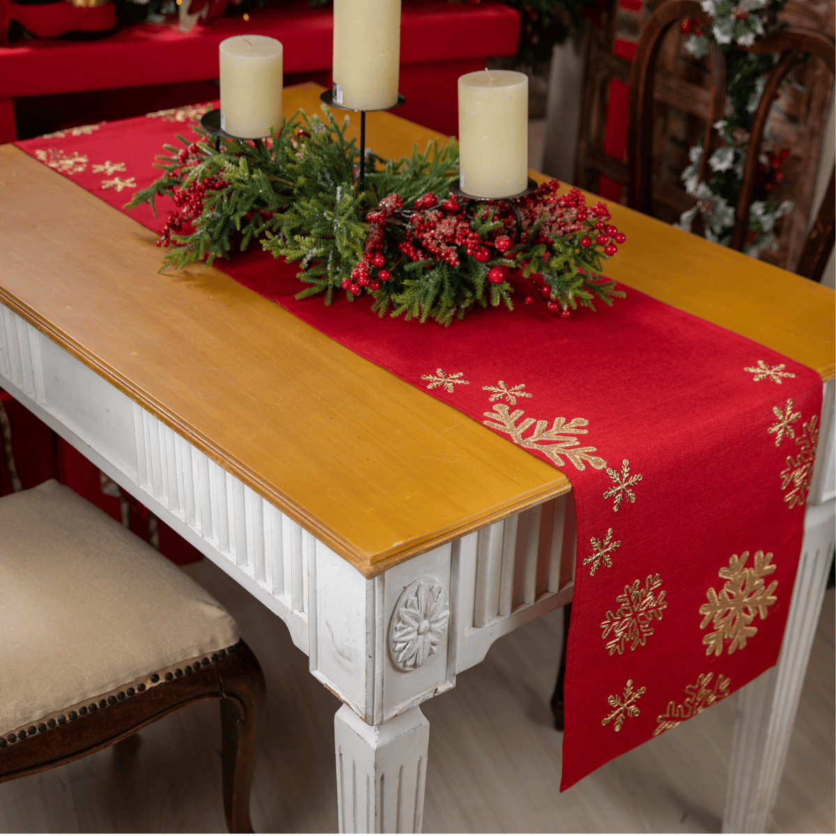 CAMINHO MESA FLOCOS NEVE VERMELHO 175x40 COM 1UN