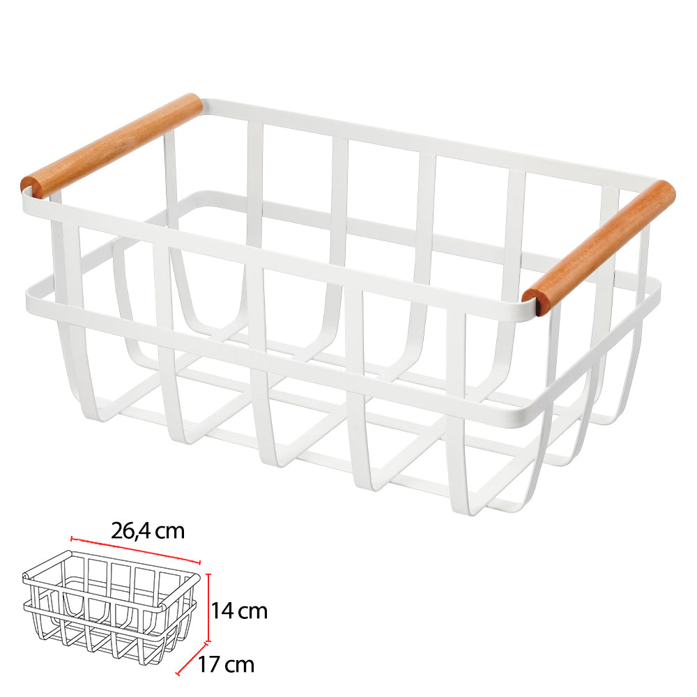 CESTO ORGANIZADOR ARAMADO COM ALÇA EM MADEIRA