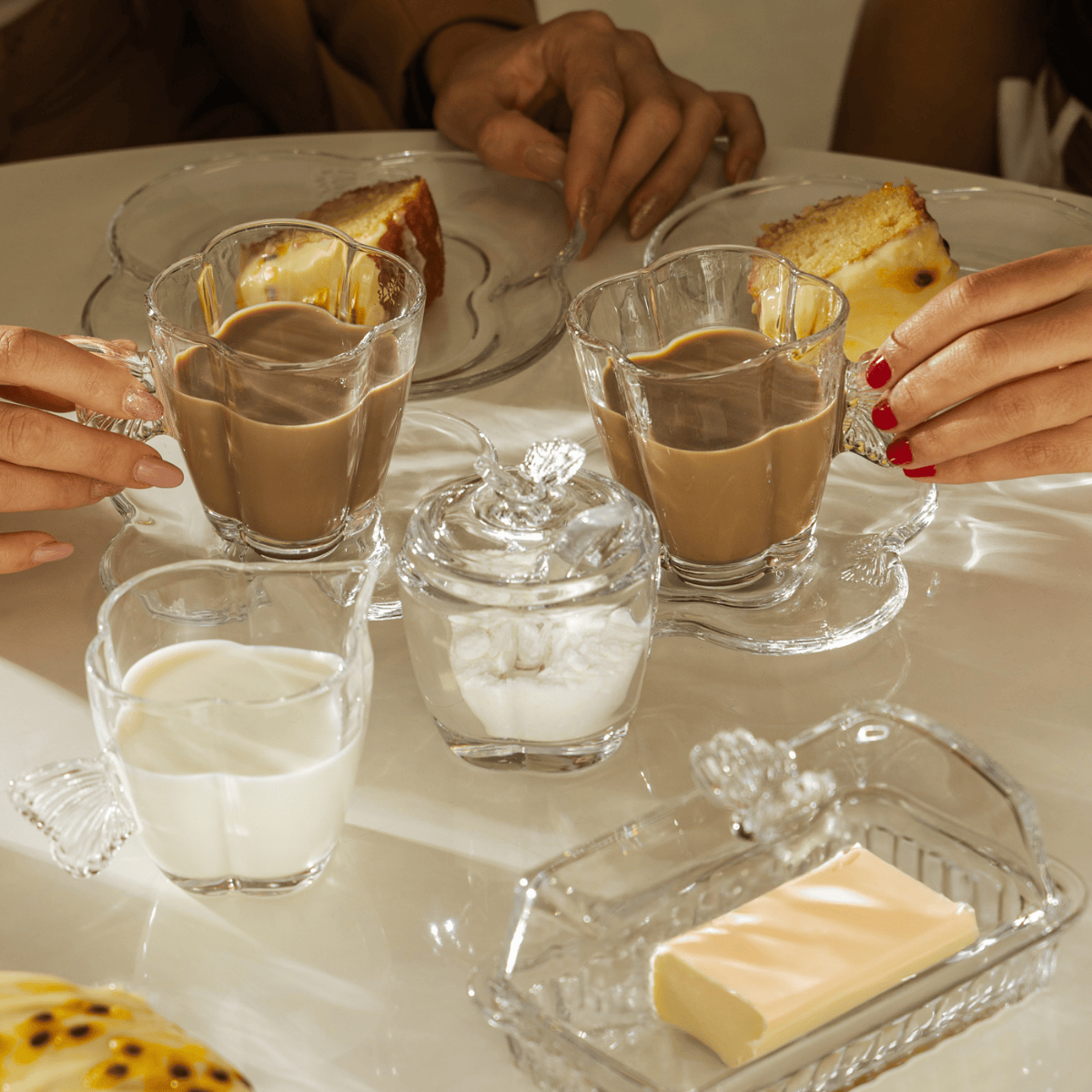 O Conjunto com 4 Xícaras de Café de Vidro com Pires Butterfly 80ml é ideal para servir café com delicadeza e elegância. Produzido em vidro de alta qualidade, destaca-se pelo design leve e transparente, que valoriza a apresentação da bebida em qualquer ocasião.