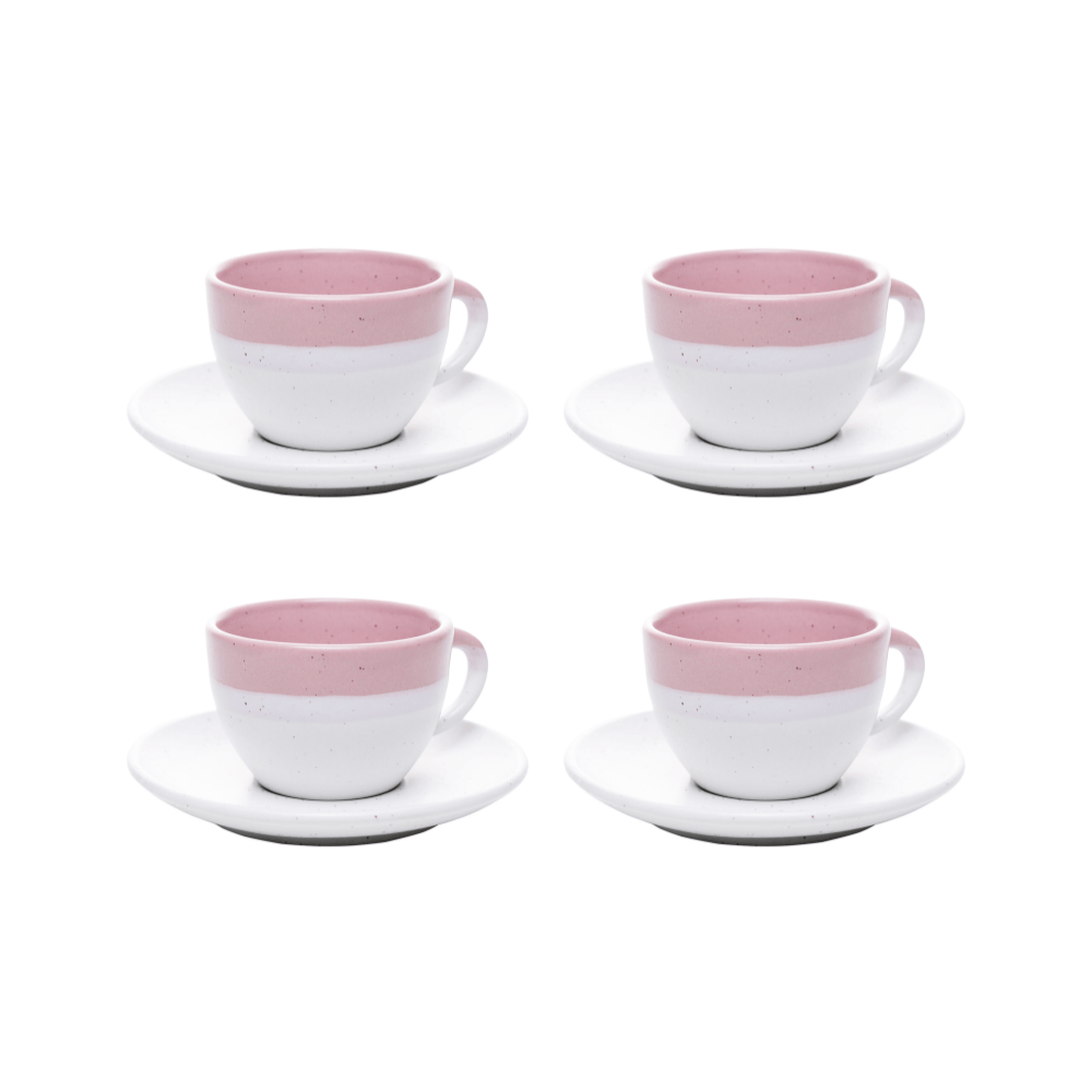 CONJUNTO 4 XICARAS DE CAFE COM PIRES OMBRE ROSA CERAMICA – 85ML
