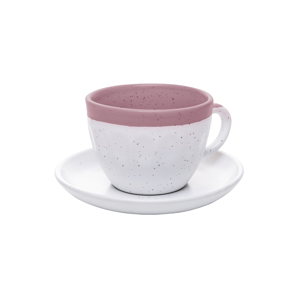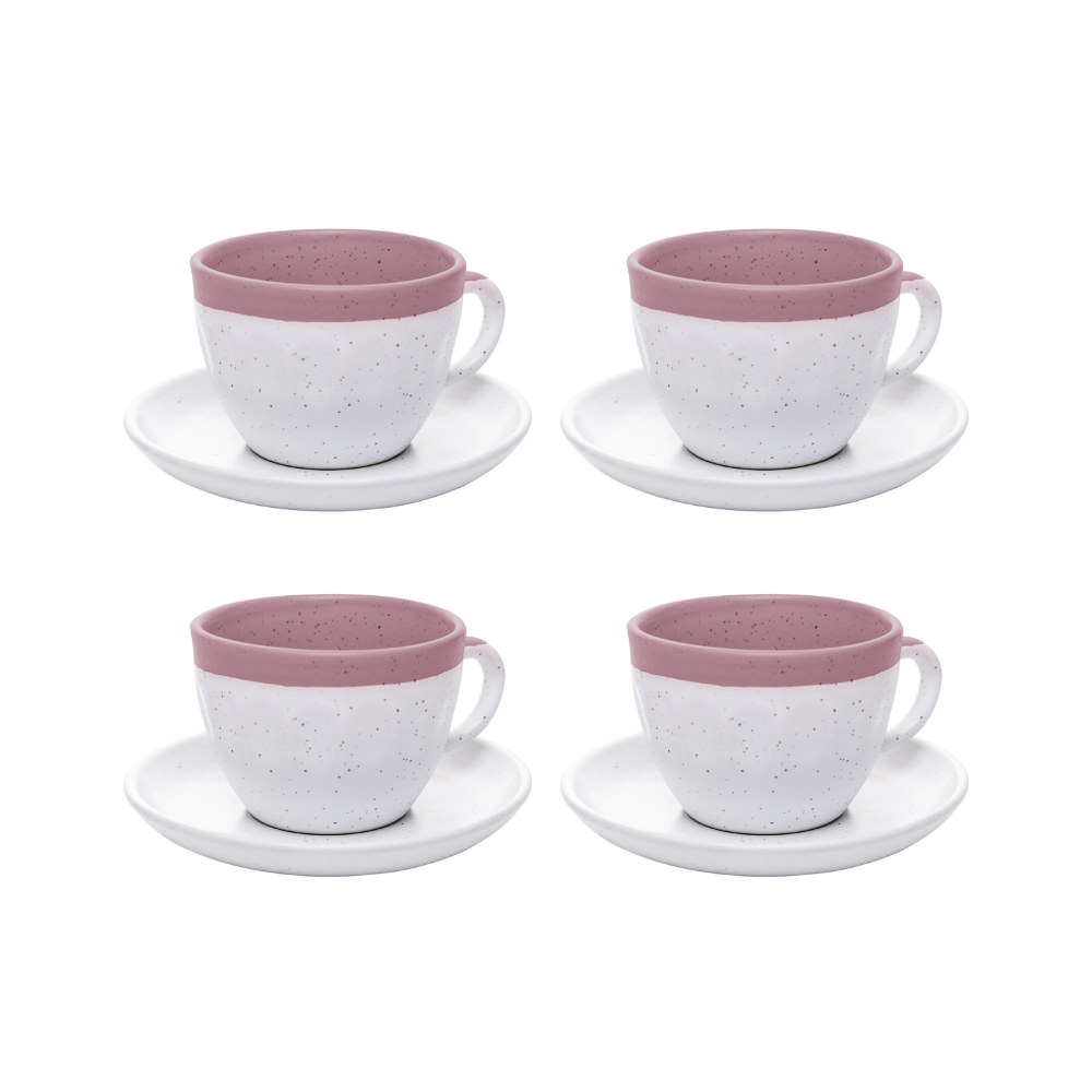 O Conjunto de 4 Xícaras de Chá com Pires Ombre Rosa traz um visual moderno e delicado, com acabamento em cerâmica tonalizada em degradê que combina rosa suave na parte interna com branco pontilhado na parte externa. Cada peça possui textura levemente orgânica e acabamento artesanal, garantindo charme e autenticidade à mesa posta. Ideais para chás, infusões e bebidas quentes, oferecem elegância e praticidade no dia a dia.