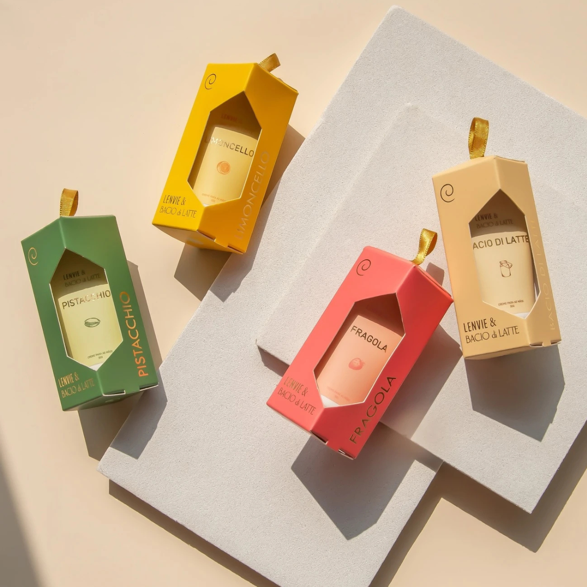 O Creme para as Mãos Bacio di Latte Lenvie traz a sofisticação de uma fragrância criada em parceria entre os perfumistas da Lenvie e o Chef da Bacio di Latte. Inspirado na sensação de uma tarde ensolarada na Itália, combina hidratação intensa com um aroma irresistível. Enriquecido com manteiga de karité, vitamina E e óleo de semente de uva, nutre e protege as mãos, prevenindo o envelhecimento precoce da pele. Vegano e cruelty-free, une cuidado e elegância em uma embalagem prática e presenteável de 30g.