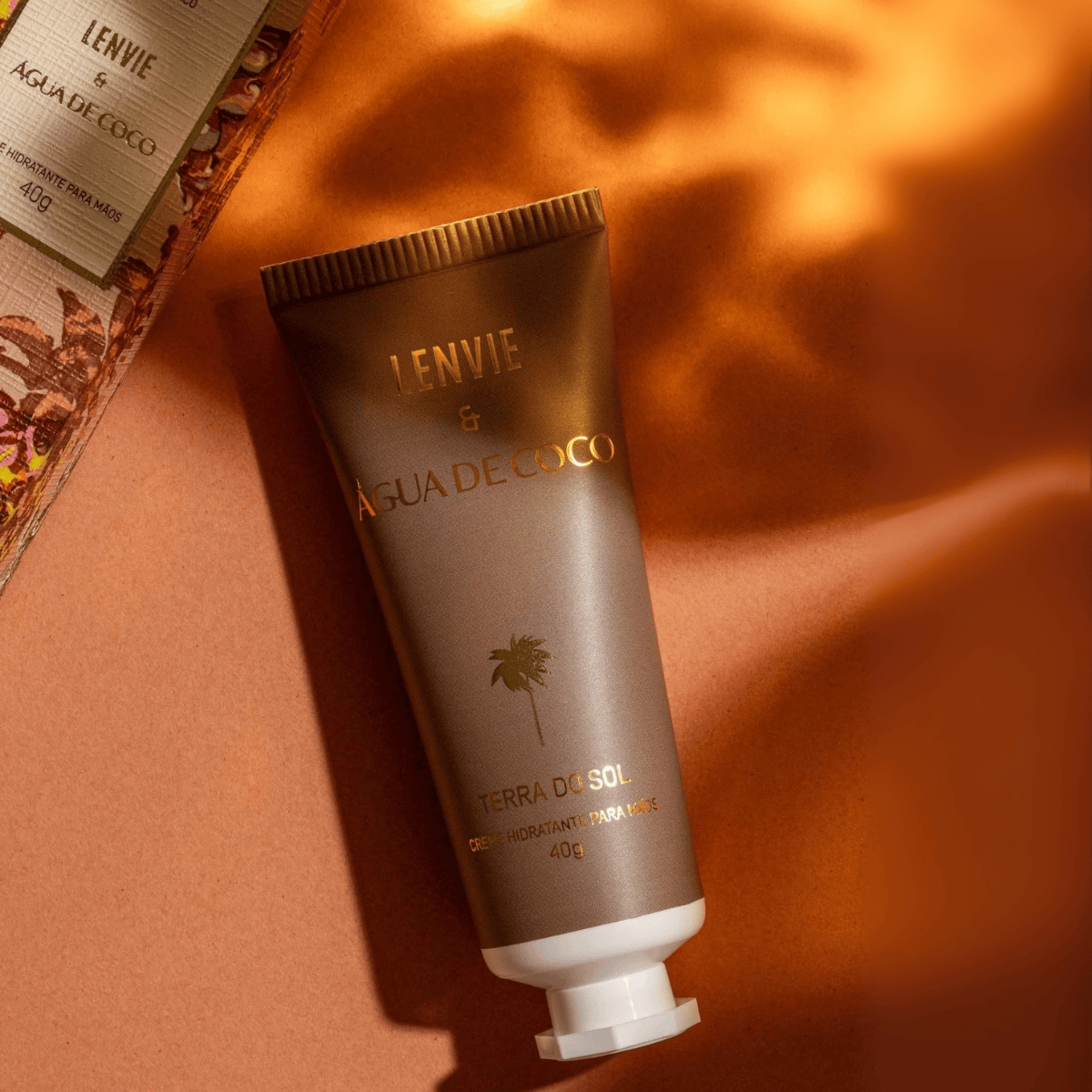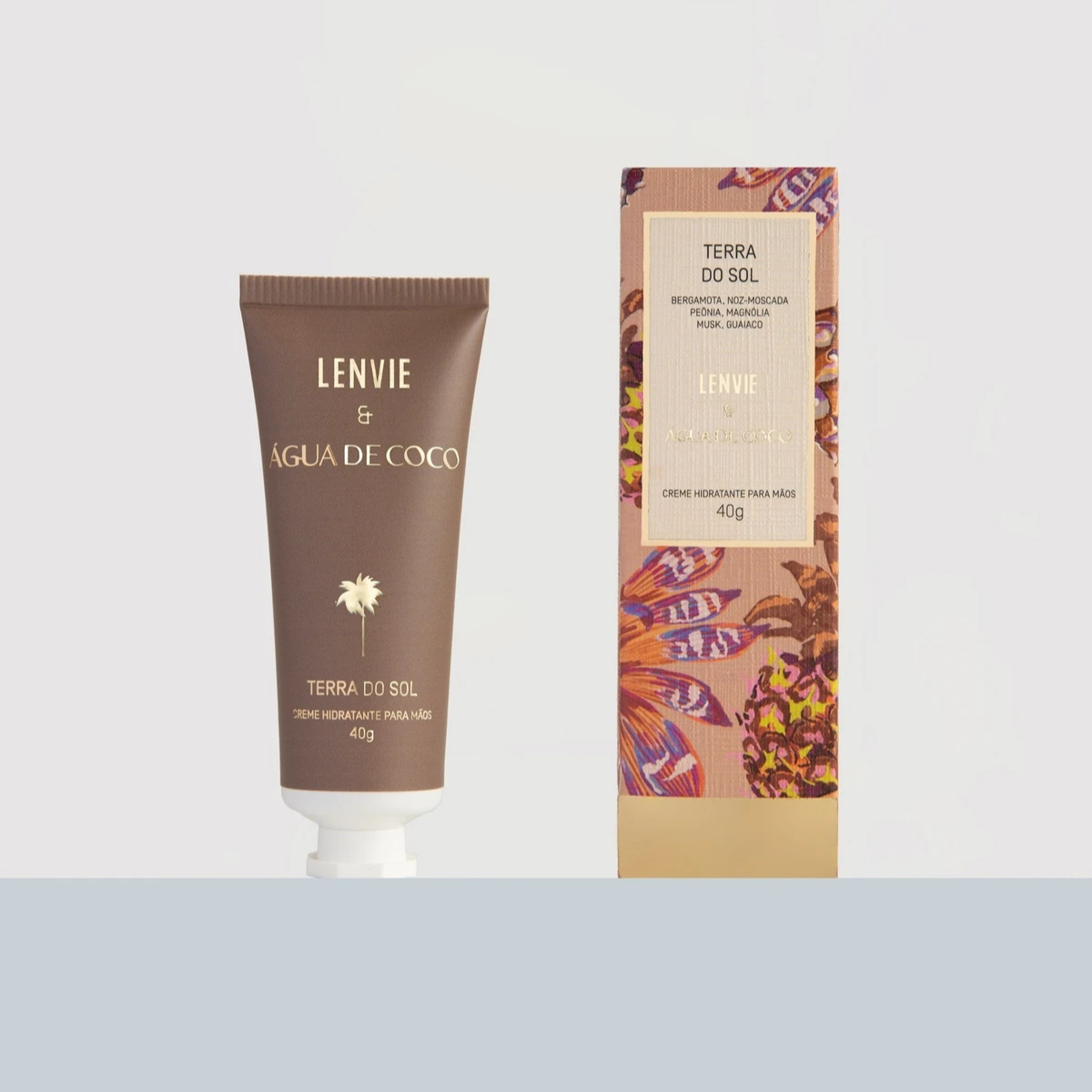 O Creme para as Mãos Terra do Sol Lenvie, criado em parceria com a Água de Coco, reflete o estilo de vida brasileiro com frescor e autenticidade. Inspirado na energia do verão, sua fragrância combina a luminosidade da bergamota e o toque especiado da noz-moscada com a delicadeza da peônia e da magnólia, finalizando com a sofisticação do musk e do guaiaco. Sua fórmula proporciona hidratação diária, deixando a pele macia e suavemente perfumada. Vegano e cruelty-free, garante cuidado consciente em uma embalagem prática de 40g.
