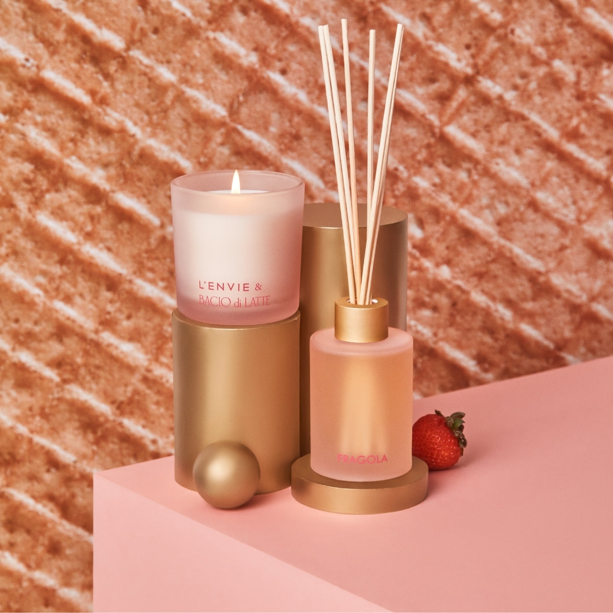 O Difusor de Perfume Fragola 130ml, em parceria entre a Bacio Di Latte e a LENVIE, traz a intensidade irresistível do morango, transformando o ambiente em um espaço acolhedor e sofisticado. Sua fragrância, inspirada nos gelatos italianos mais icônicos, traduz a sensação de uma tarde ensolarada na Itália em notas doces e envolventes que perfumam delicadamente o ar.