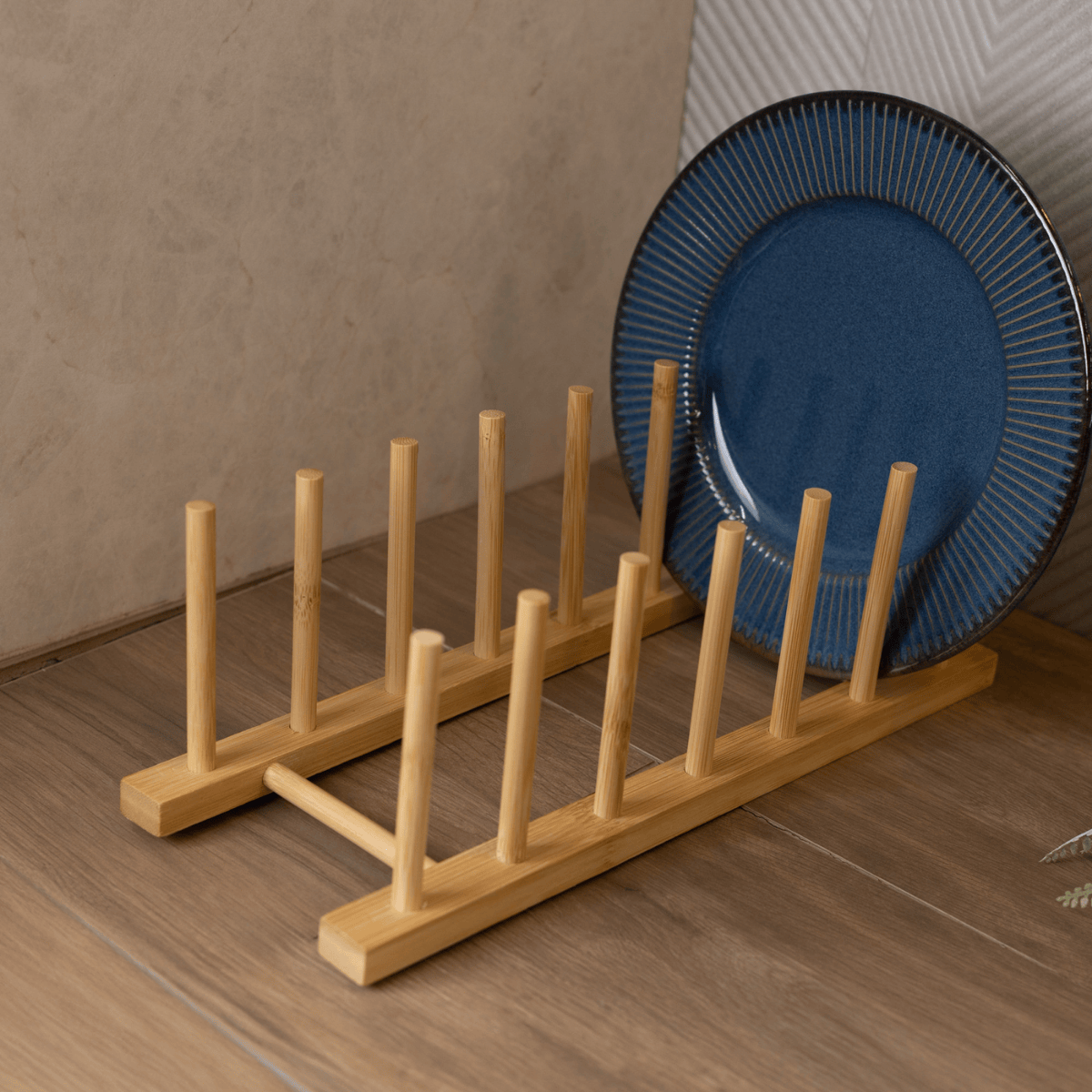 Produzido em bambu renovável e resistente à umidade, apresenta durabilidade, facilidade de limpeza e impacto ambiental reduzido. Seu design ventilado permite secagem rápida e ocupa pouco espaço, ideal para cozinhas práticas com sensação natural.