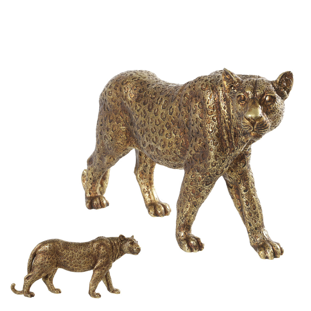 ESCULTURA DECORATIVA POLIRESINA LEOPARDO (DOURADO)