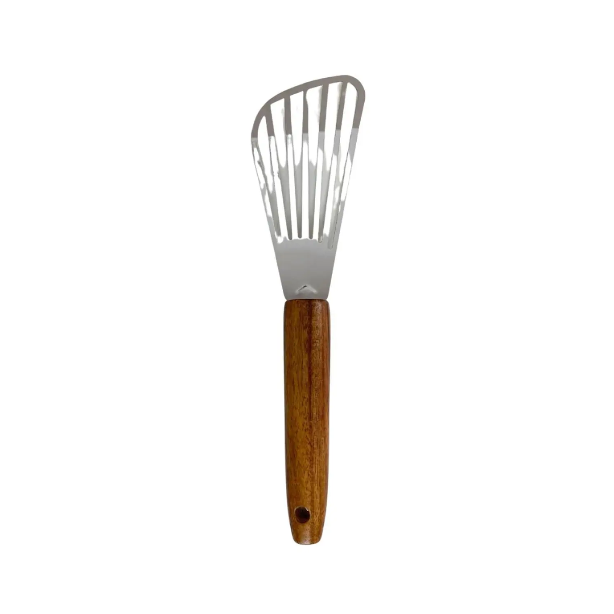 A espátula vazada com cabo em madeira acácia une resistência, praticidade e sofisticação para sua cozinha. Produzida em aço inox de alta qualidade, é ideal para manusear e servir alimentos, permitindo escorrer líquidos e gorduras com facilidade graças ao design vazado.