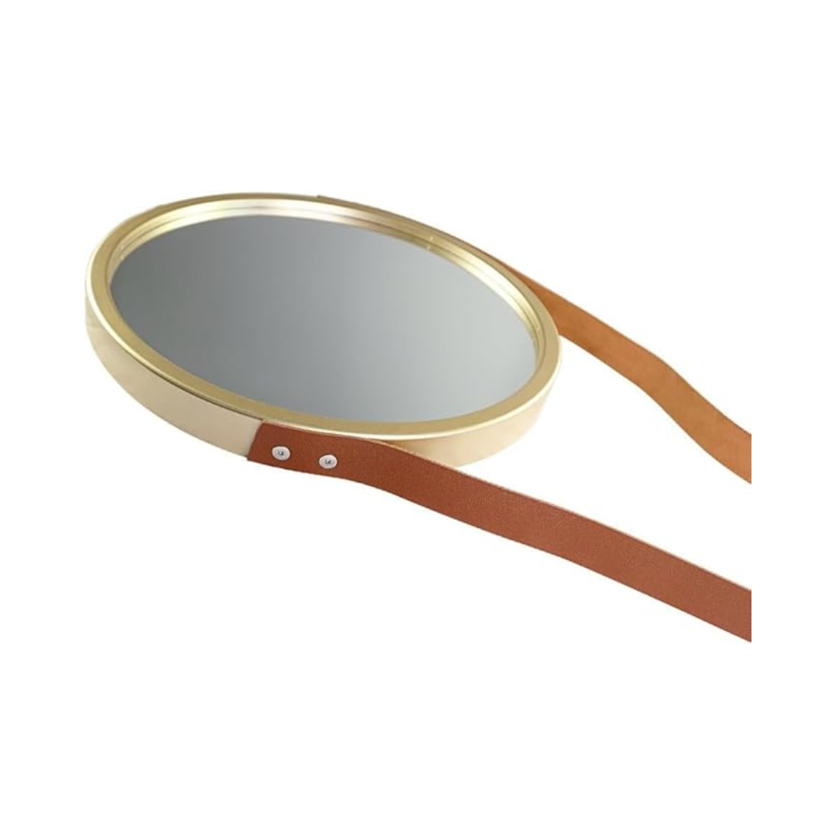 ESPELHO DECORATIVO DE PAREDE PLASTICO REDONDO COM ALCA LUXUS CHAMPAGNE 33CM