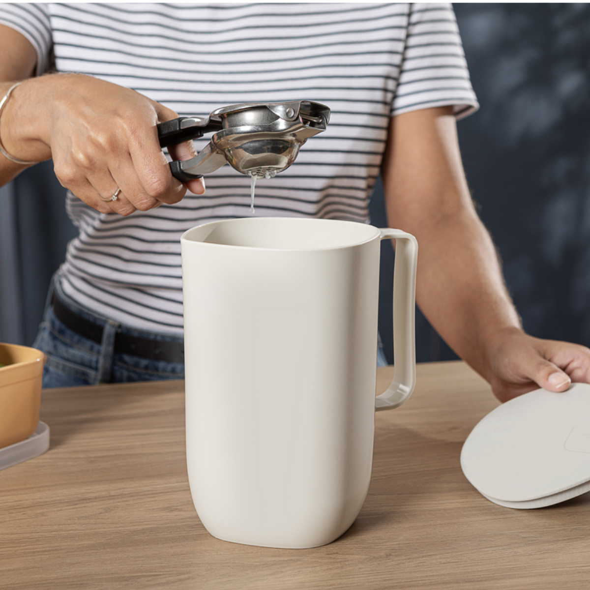 Com design moderno e funcional, a jarra é perfeita para acompanhar o dia a dia com praticidade. Fabricada em polipropileno livre de BPA, ela é leve, resistente e fácil de limpar. A tampa com bico direcionador permite servir com mais segurança, evitando respingos, e o acabamento fosco no tom cinza traz um toque contemporâneo à cozinha ou mesa posta. Ideal para servir água, sucos ou chás com estilo e funcionalidade.