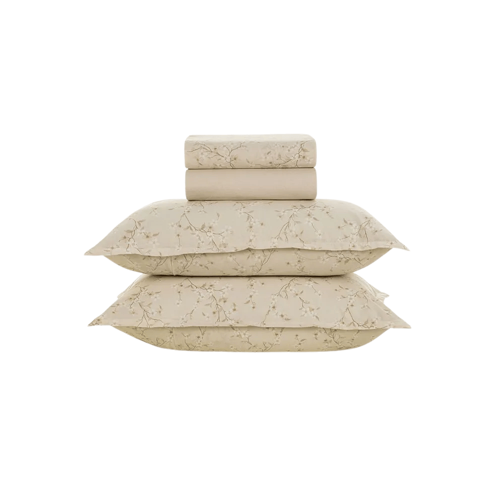 O jogo de cama Beatriz combina leveza, conforto e sofisticação em um visual acolhedor. Produzido em 100% algodão penteado 160 fios, oferece toque suave, resistência e não forma bolinhas. A estampa floral delicada em tons neutros decora o sobrelençol e as fronhas, transmitindo tranquilidade e elegância. O lençol com elástico apresenta discreto padrão poá, que completa o conjunto com charme e harmonia.