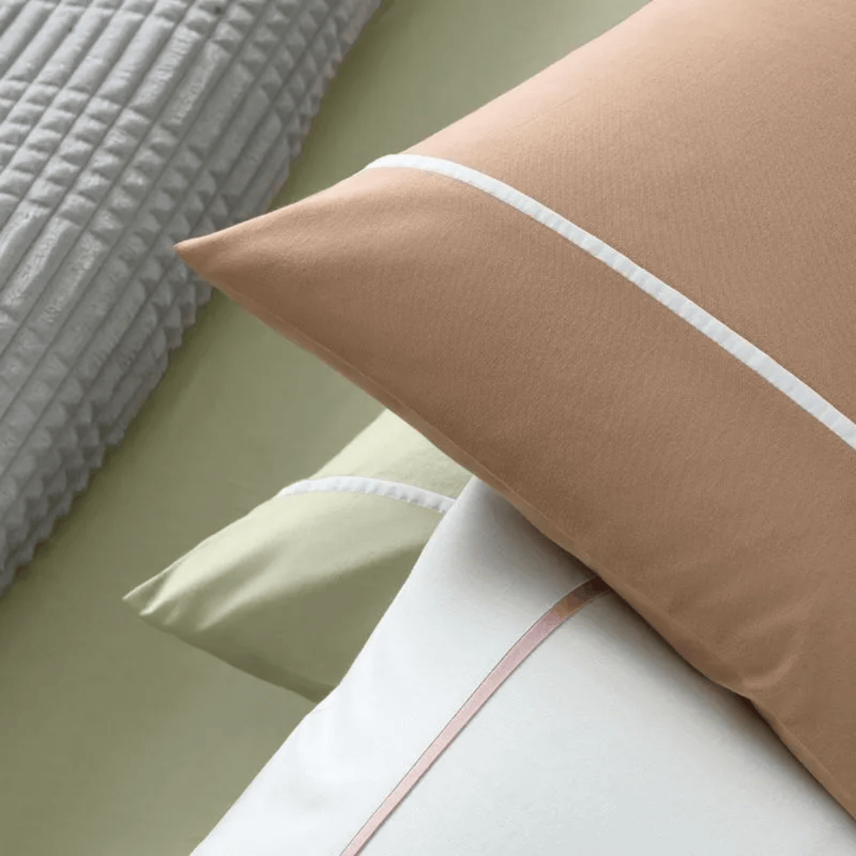 O Jogo de Lençol Queen Noah traz maciez e elegância em um só conjunto. Confeccionado em 100% algodão de 160 fios, garante resistência, toque agradável e tecido encorpado com tecnologia antipilling, respirável e hipoalergênico. Na tonalidade caramelo com filete branco, oferece charme e sofisticação ao quarto.