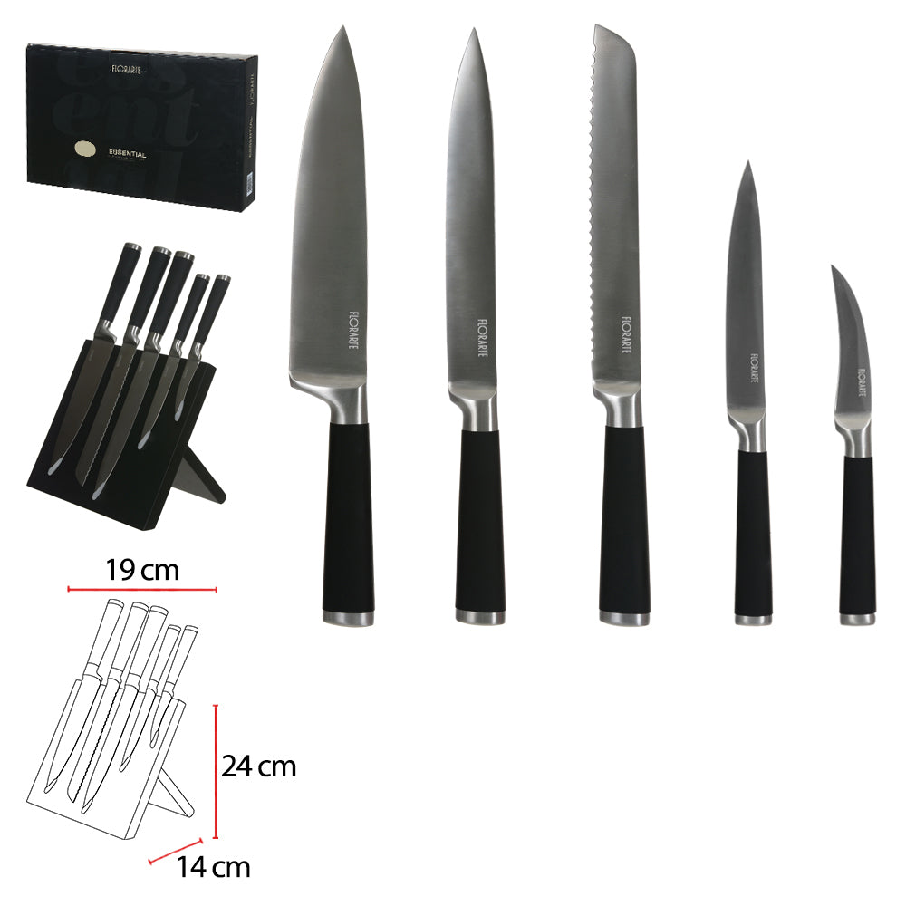 JOGO DE FACAS ACO INOX 24X14X19CM COM 6 PEÇAS E SUPORTE MAGNETICO (PRETO)