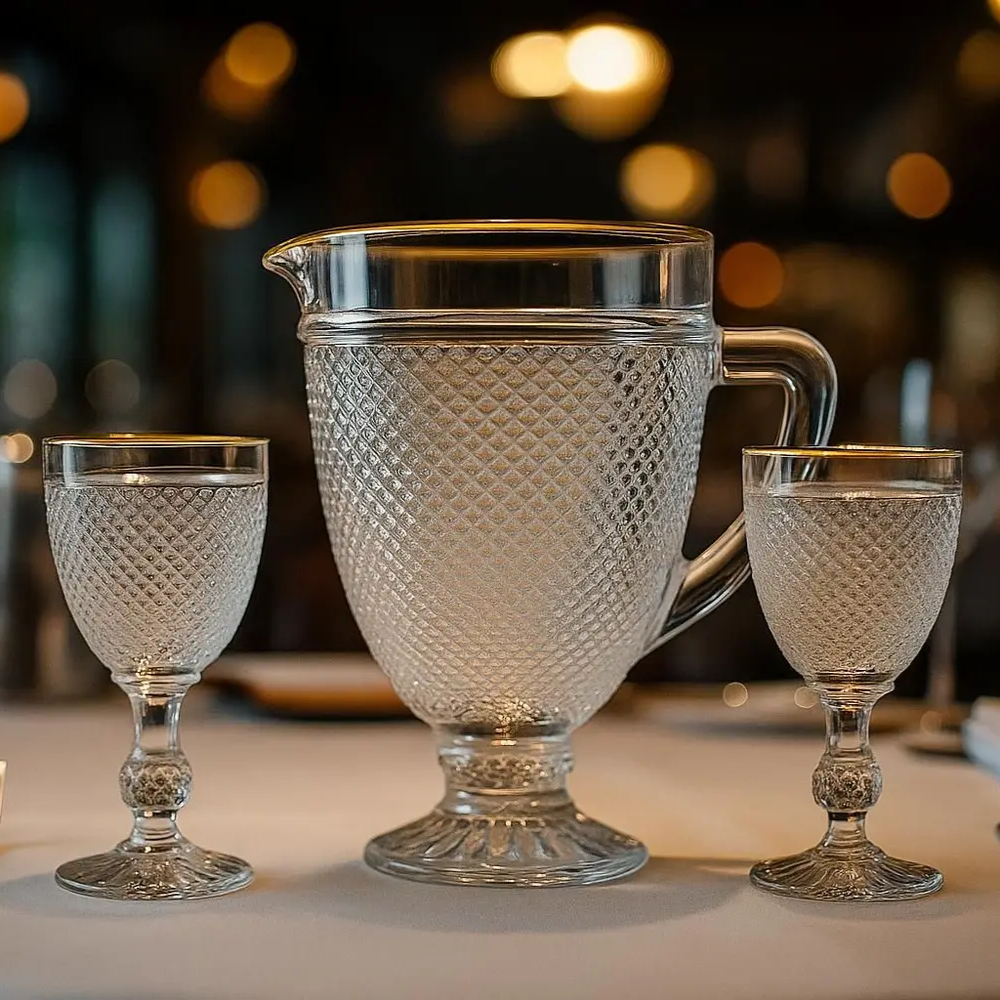 O Jogo de Jarra e Taças Diamond une elegância e praticidade para compor a mesa com sofisticação. Com design facetado que reflete a luz de forma refinada, cada peça é feita em vidro de alta qualidade e acabamento translúcido, garantindo resistência e brilho duradouro. Ideal para servir sucos, refrescos e outras bebidas com charme e bom gosto.