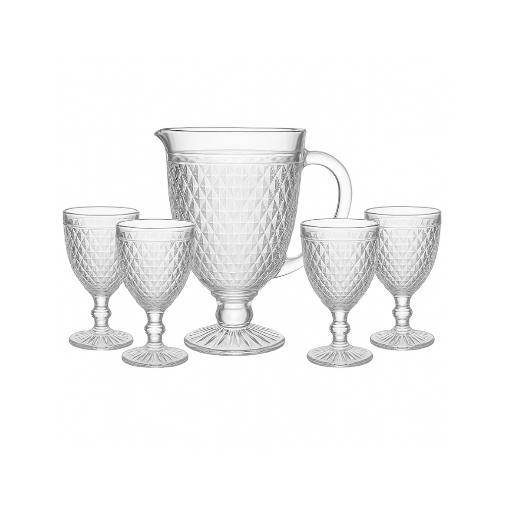 JOGO DE JARRA E TAÇAS DIAMOND COM 5 PEÇAS