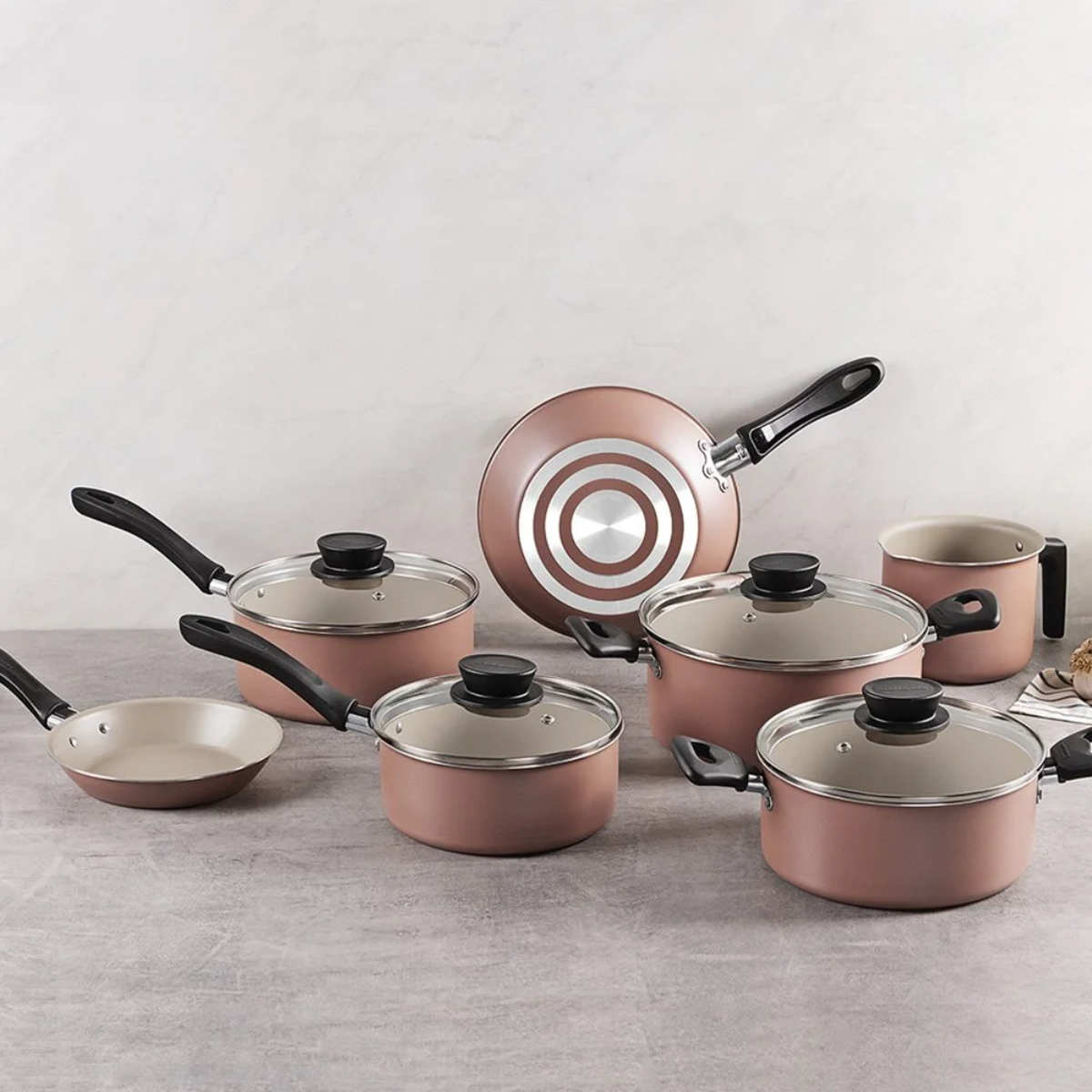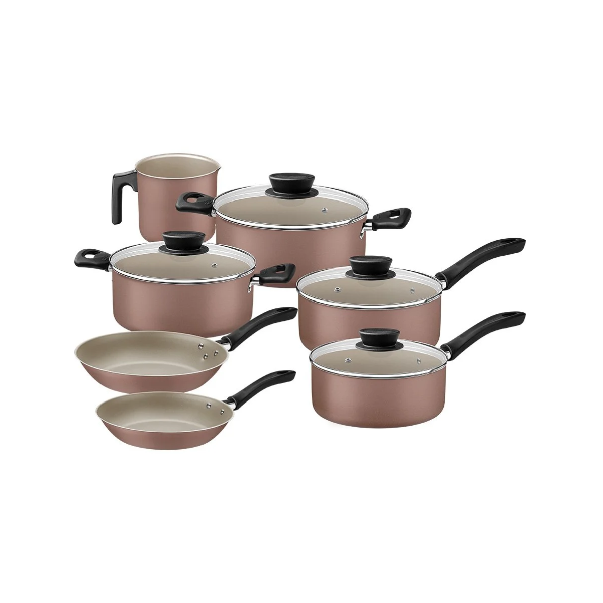 O jogo de panelas Linz Mocaccino traz praticidade e elegância para a sua cozinha. Produzidas em alumínio com revestimento antiaderente, garantem preparo saudável dos alimentos e fácil limpeza. As tampas em vidro temperado permitem visualizar o cozimento sem abrir, enquanto os cabos e pegadores em baquelite antitérmico oferecem segurança no manuseio. Com design moderno na cor mocaccino, o conjunto une resistência, beleza e funcionalidade no dia a dia.