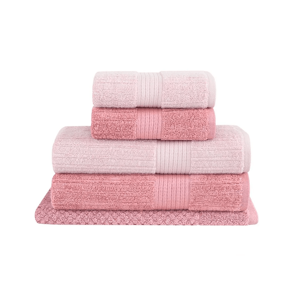 JOGO DE TOALHAS 5 PEÇAS FIO PENTEADO CANELADO ROSA PÉTALA – 70CM X 1,40M
