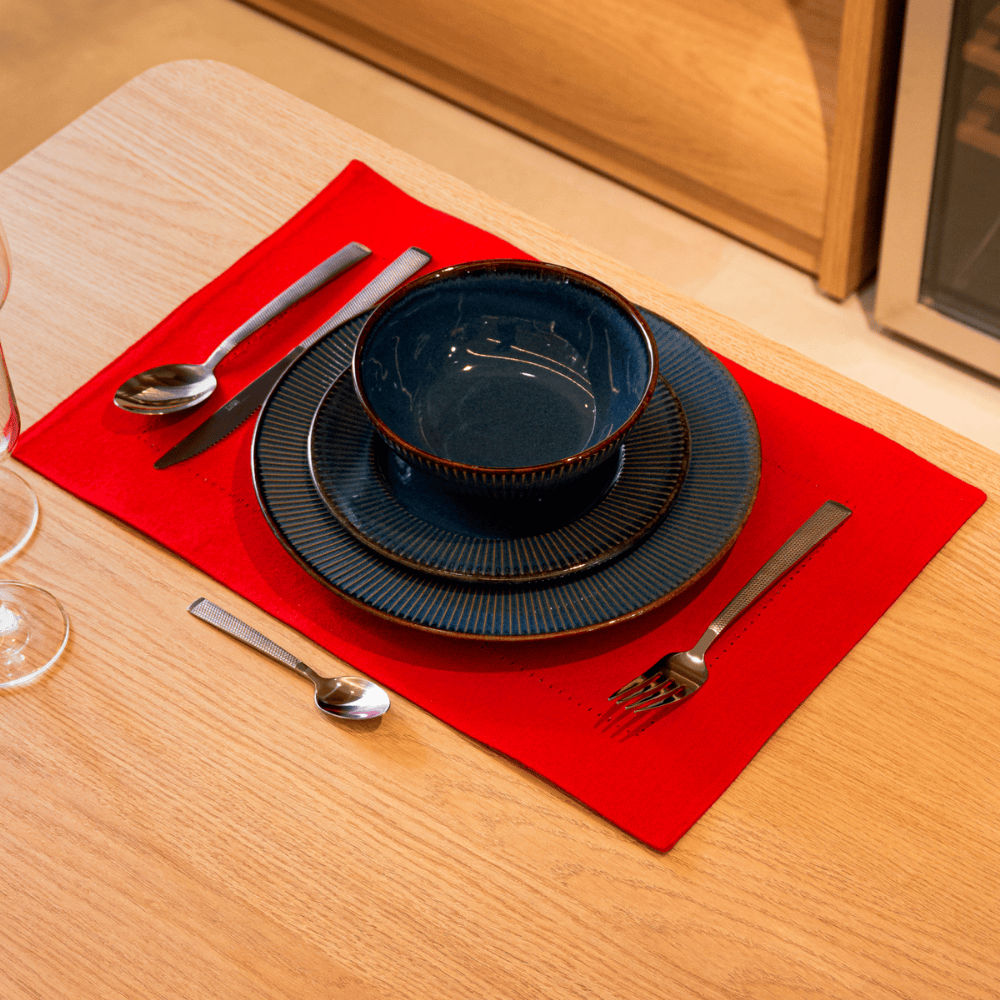 Lugar americano que traz praticidade e um toque de cor para compor mesas bem apresentadas no dia a dia ou em ocasiões especiais. Confeccionado em algodão, oferece toque macio, boa resistência e acabamento cuidadoso, enquanto a cor vermelha adiciona destaque e personalidade à composição, valorizando a apresentação das refeições e protegendo a superfície da mesa.