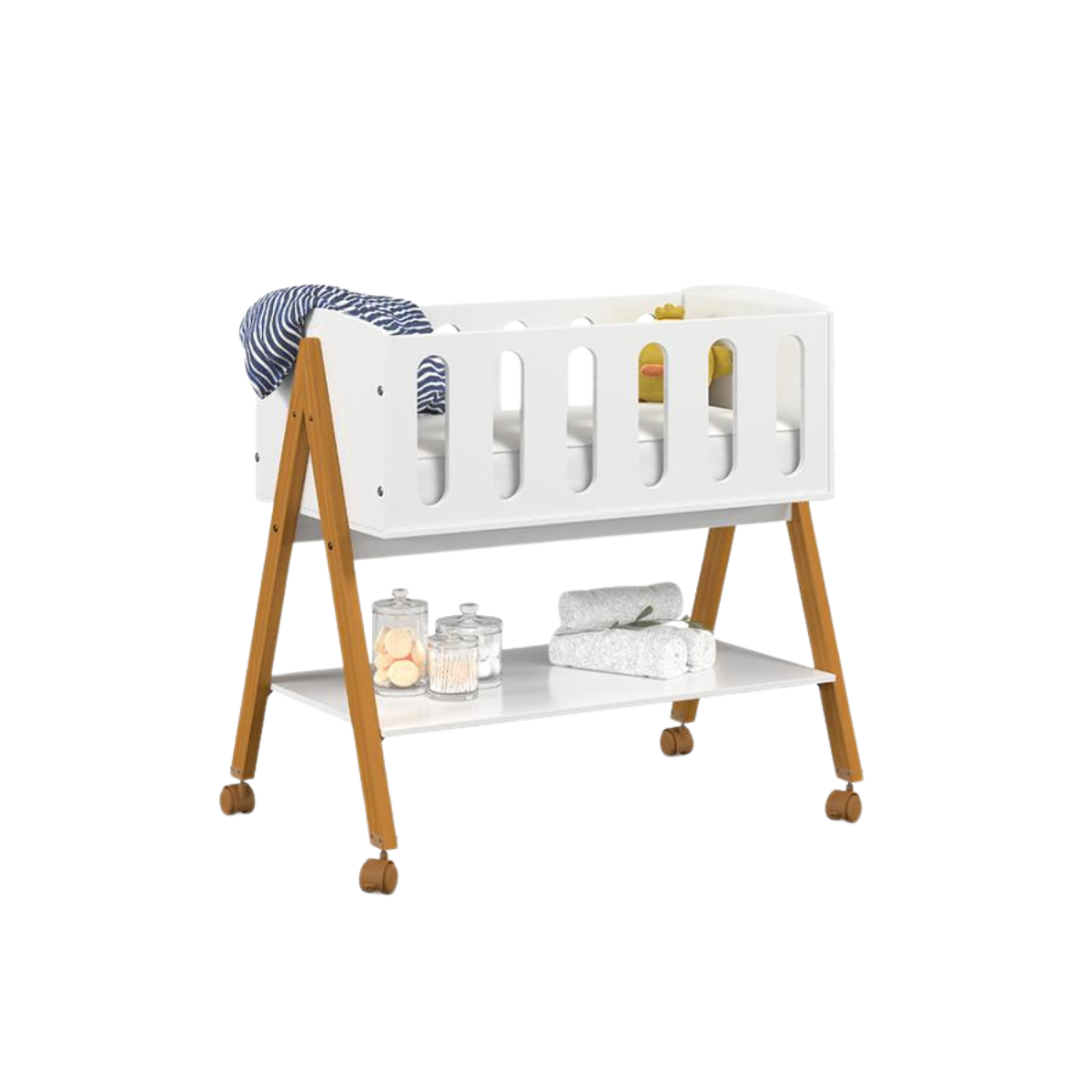 Com rodinhas que facilitam a movimentação, o berço acompanha a rotina sem esforço. Sua multifuncionalidade é um grande diferencial: após a fase de uso como berço, ele se transforma em cesto de brinquedos e até em uma escrivaninha, prolongando sua utilidade no dia a dia.