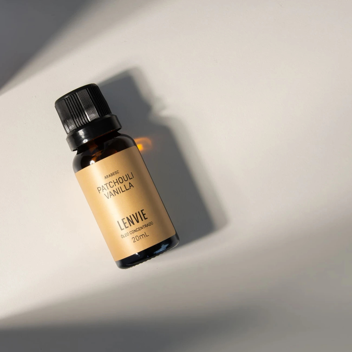 Óleo concentrado da linha Arabesc com fragrância Patchouli Vanilla, ideal para uso em difusores elétricos, cerâmicos ou de varetas. Em um frasco de 20ml, oferece um aroma marcante, envolvente e sofisticado, combinando notas amadeiradas do patchouli com o toque adocicado da baunilha.