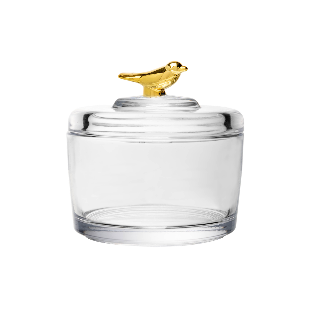 O pote Golden Bird em cristal ecológico é uma peça funcional com toque de sofisticação, ideal para unir beleza e organização no dia a dia. Seu design transparente valoriza o conteúdo enquanto a tampa com delicado puxador em forma de pássaro dourado traz um charme singular ao ambiente, seja na cozinha, sala ou escritório.