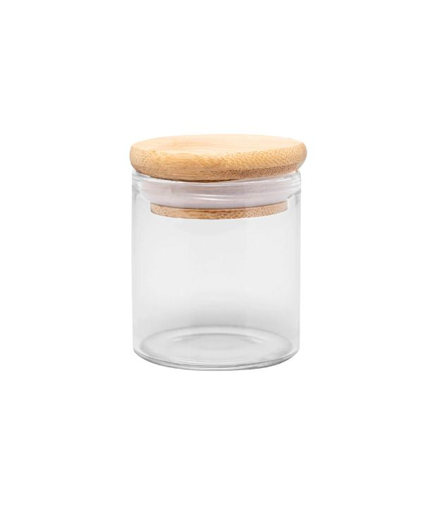 POTE DE VIDRO COM TAMPA DE BAMBU 60ML