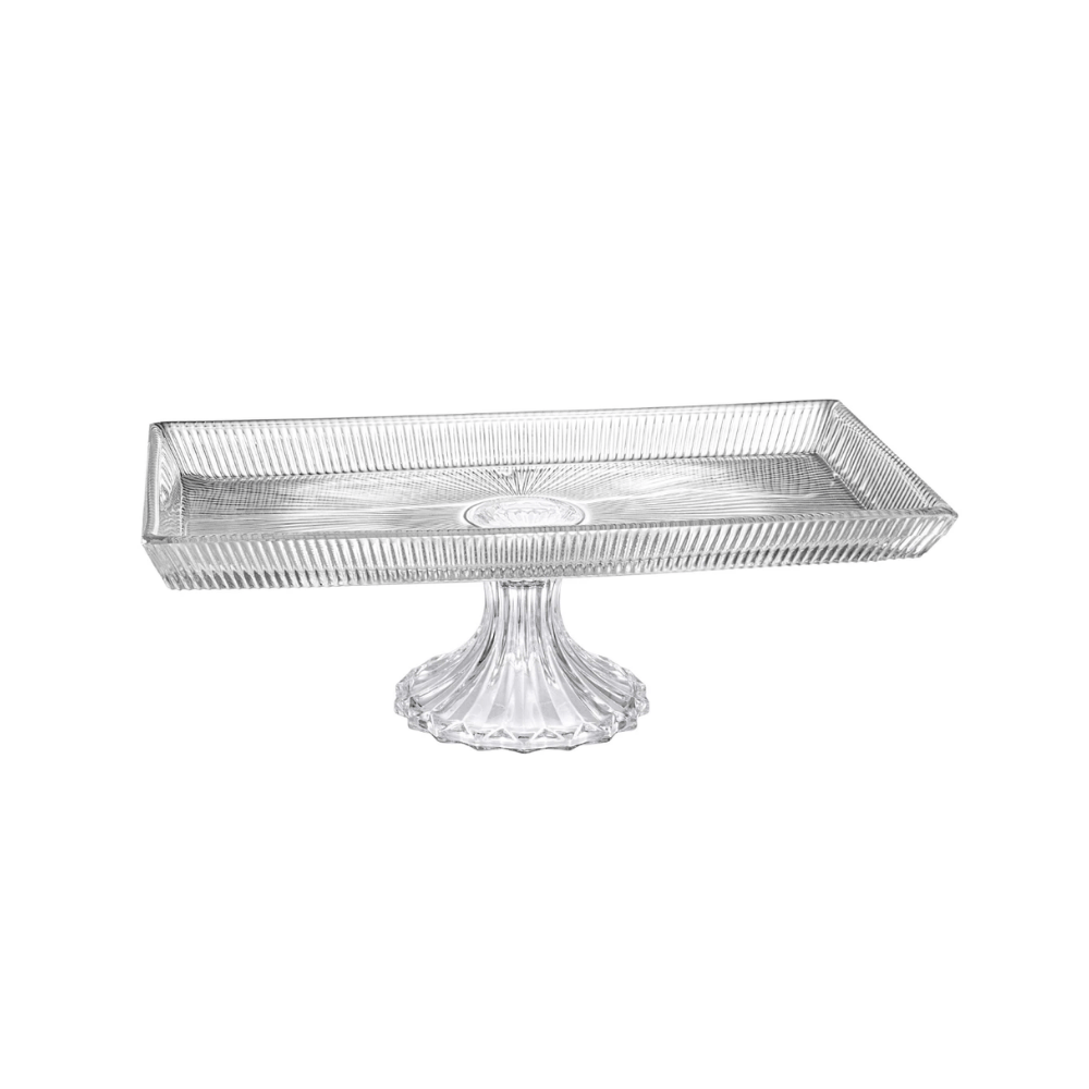 O prato para bolo Tattile combina o charme clássico do cristal ecológico com um design retangular elegante e totalmente texturizado. O pé robusto traz estabilidade e um visual sofisticado, realçando sobremesas, bolos e tortas com muito estilo. A transparência brilhante e as linhas marcadas criam um efeito decorativo moderno, ideal tanto para uso no dia a dia quanto para compor mesas especiais.