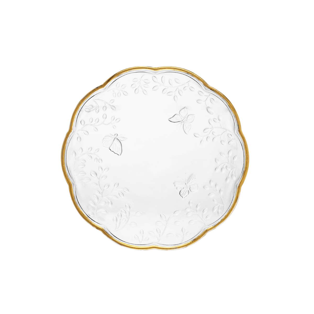 PRATO RASO NEW BUTTERFLY COM FIO DE OURO 26,5CM X 27CM X 2CM CRISTAL ECOLOGICO
