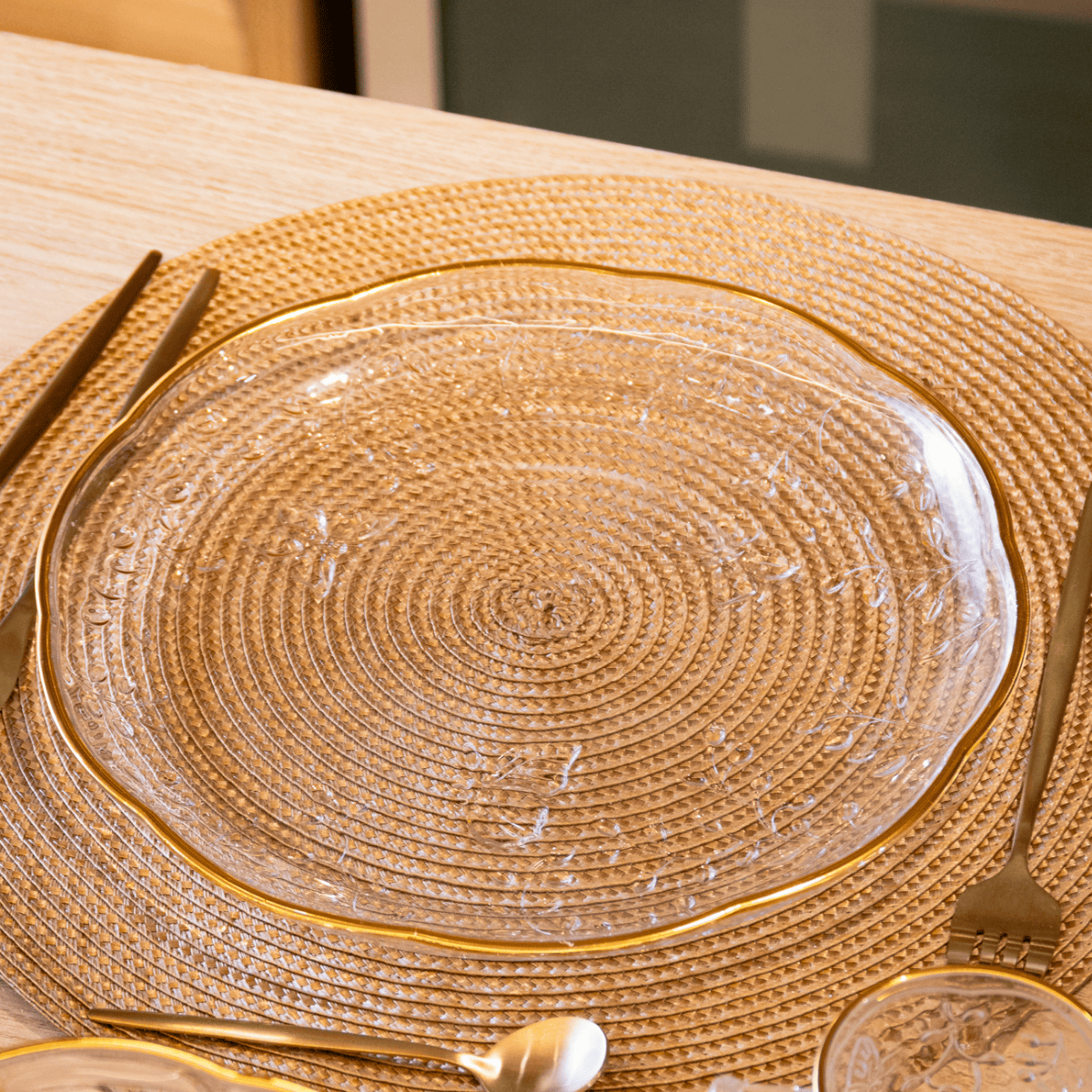 O prato raso New Butterfly em cristal ecológico com acabamento em fio de ouro é ideal para refeições com estilo e consciência ambiental. A borda dourada traz um toque refinado à estética minimalista, enquanto o cristal ecológico assegura transparência leve e sustentável.