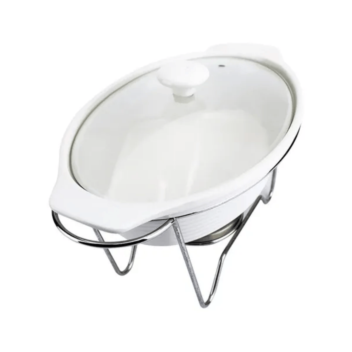 O Rechaud Oval em porcelana com queimador é a peça perfeita para quem busca unir praticidade, sofisticação e funcionalidade à mesa. Com design elegante, ele mantém suas refeições aquecidas por mais tempo, ideal para jantares, reuniões ou ocasiões especiais. Acompanha suporte em aço inox que garante resistência e durabilidade, além da tampa em vidro temperado que permite visualizar os alimentos sem precisar abrir. O queimador possui regulagem de intensidade da chama, oferecendo maior controle no aquecimento.