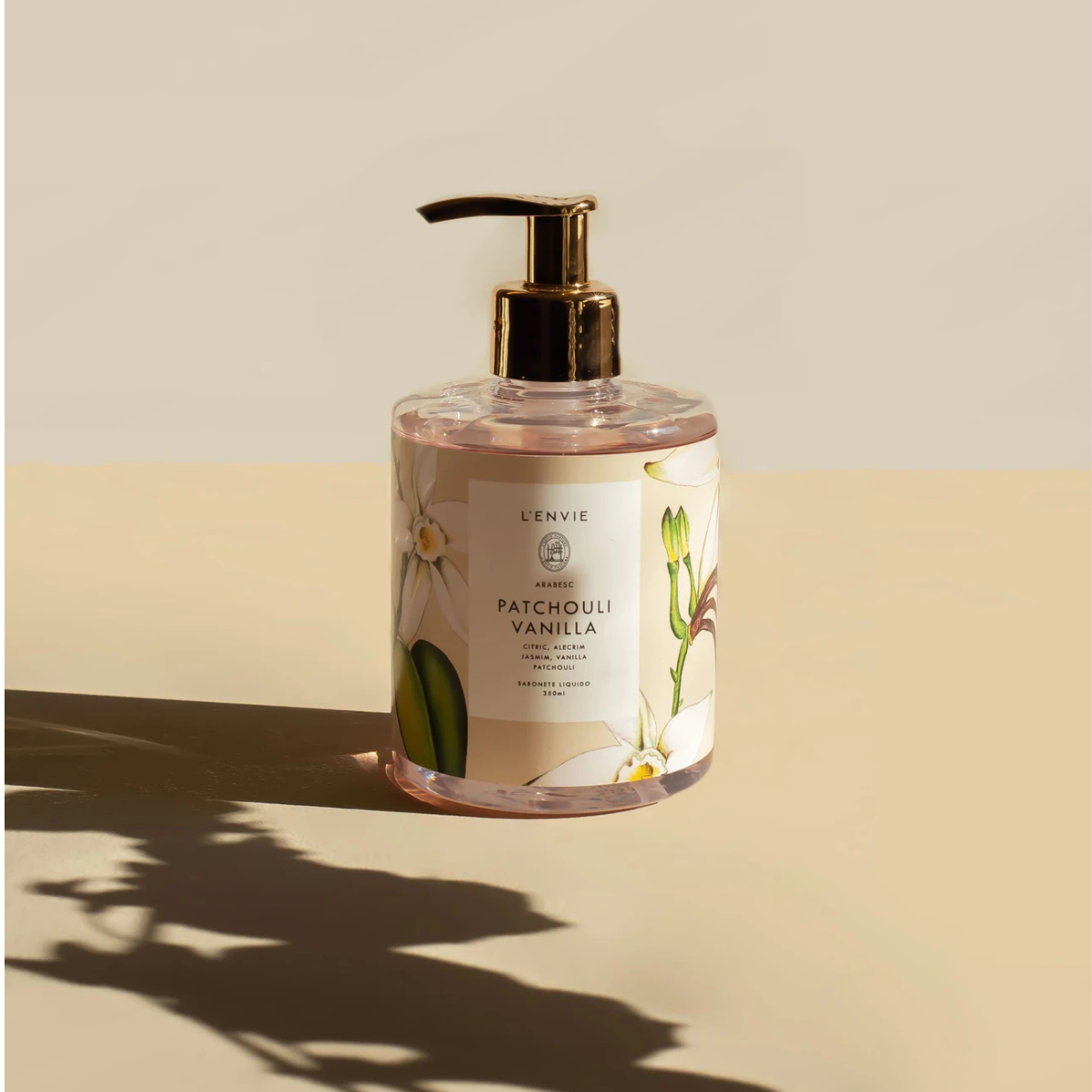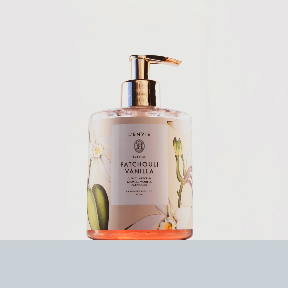 O Sabonete Líquido Patchouli Vanilla Arabesc traz sofisticação e cuidado para sua rotina. Com perfil olfativo oriental aromático, essa fragrância best seller da LENVIE combina notas frescas com um leve toque floral, finalizando com a intensidade amadeirada e o dulçor equilibrado do patchouli e do musk. Sua fórmula pode ser utilizada tanto nas mãos quanto no corpo, proporcionando limpeza suave e sensação de bem-estar. A embalagem prática e resistente preserva a qualidade do produto, além de agregar charme à decoração.