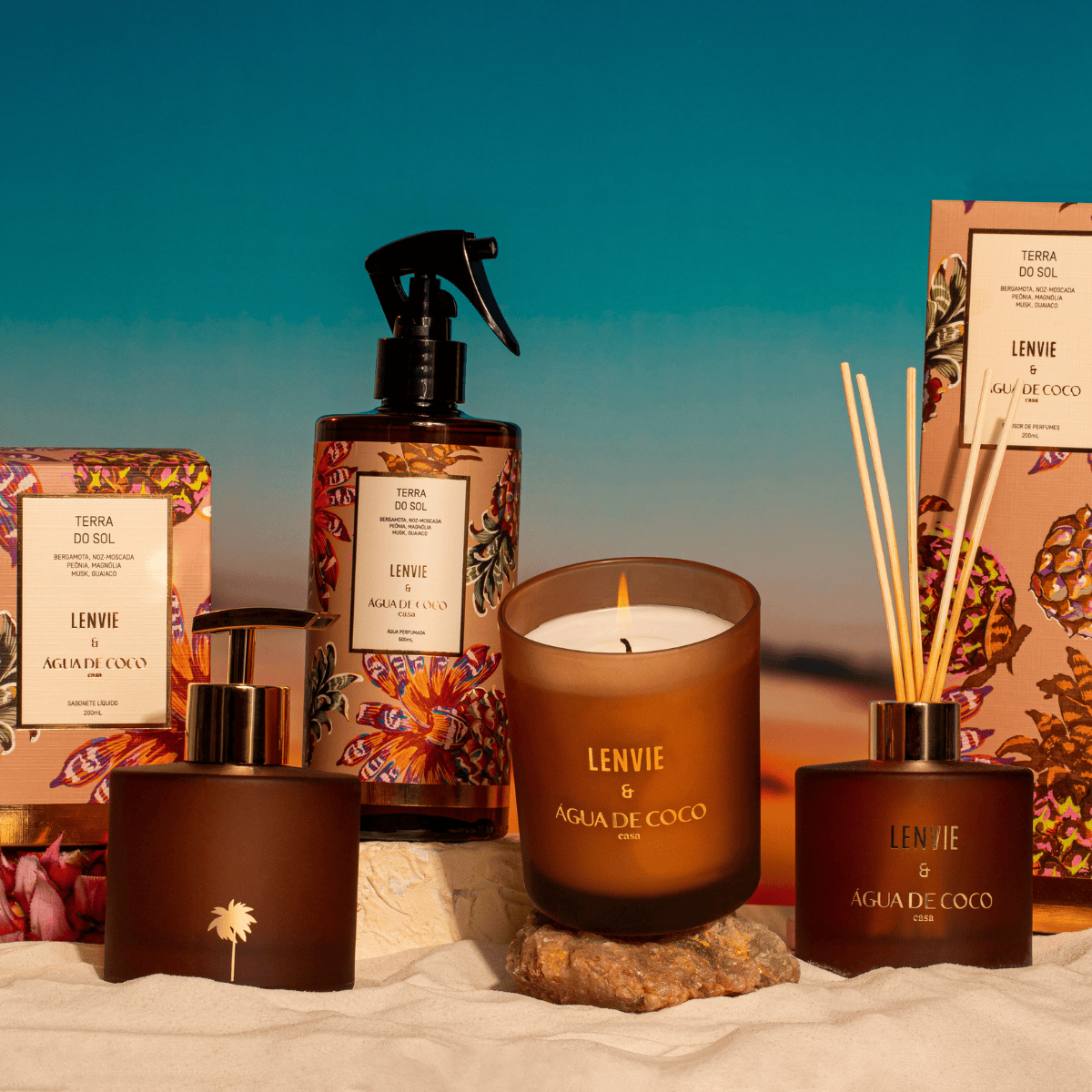 O Sabonete Líquido Terra do Sol 200ml, em collab com a Água de Coco, traduz o estilo de vida brasileiro e solar, levando a energia do verão para dentro de casa todos os dias do ano. Sua fragrância combina a luminosidade da bergamota e o toque especiado da noz-moscada com a delicadeza da peônia e da magnólia. Finalizado com notas sofisticadas de musk e guaiaco, proporciona frescor, leveza e uma experiência olfativa envolvente.