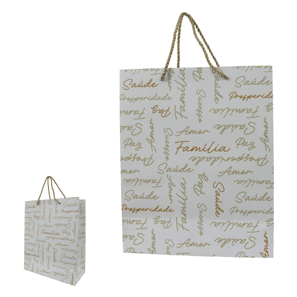 SACOLA DE PRESENTE DESEJOS BRANCO