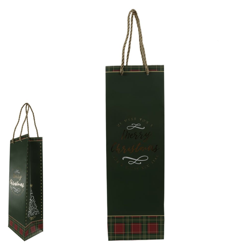 SACOLA DE VINHO MERRY CHRISTMAS VERDE
