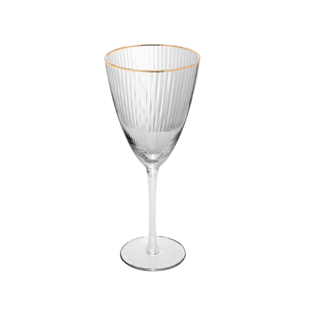 A taça de vinho Lines combina transparência cristalina com um design sofisticado em vidro texturizado, trazendo leveza e elegância para compor mesas clássicas ou contemporâneas. Sua borda dourada adiciona um toque refinado, enquanto o formato alongado favorece a apreciação dos aromas e sabores do vinho. Um item que se destaca pela estética e pela qualidade, ideal para quem busca beleza e funcionalidade no dia a dia.