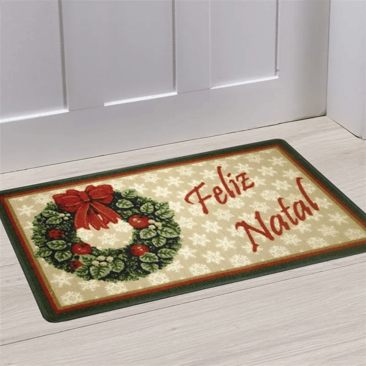 Produzido no Egito, o Tapete Boucle Natalino foi desenvolvido para deixar sua casa ainda mais charmosa e aconchegante durante as festas de fim de ano. Com estampa temática de guirlanda e mensagem “Feliz Natal”, ele traz o espírito natalino para a decoração, unindo praticidade e beleza em uma peça versátil. Além do design encantador, é confortável e resistente, ideal para receber familiares e amigos nessa época especial.