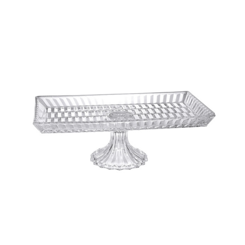 A Travessa Retangular com Pé Tattile é sinônimo de elegância e sofisticação. Produzida em cristal ecológico, combina transparência impecável e brilho intenso com um design elevado que valoriza qualquer composição de mesa. Seu formato retangular e base robusta destacam doces, tortas e petiscos, tornando o servir ainda mais refinado. Ideal tanto para ocasiões especiais quanto para o uso decorativo no dia a dia.