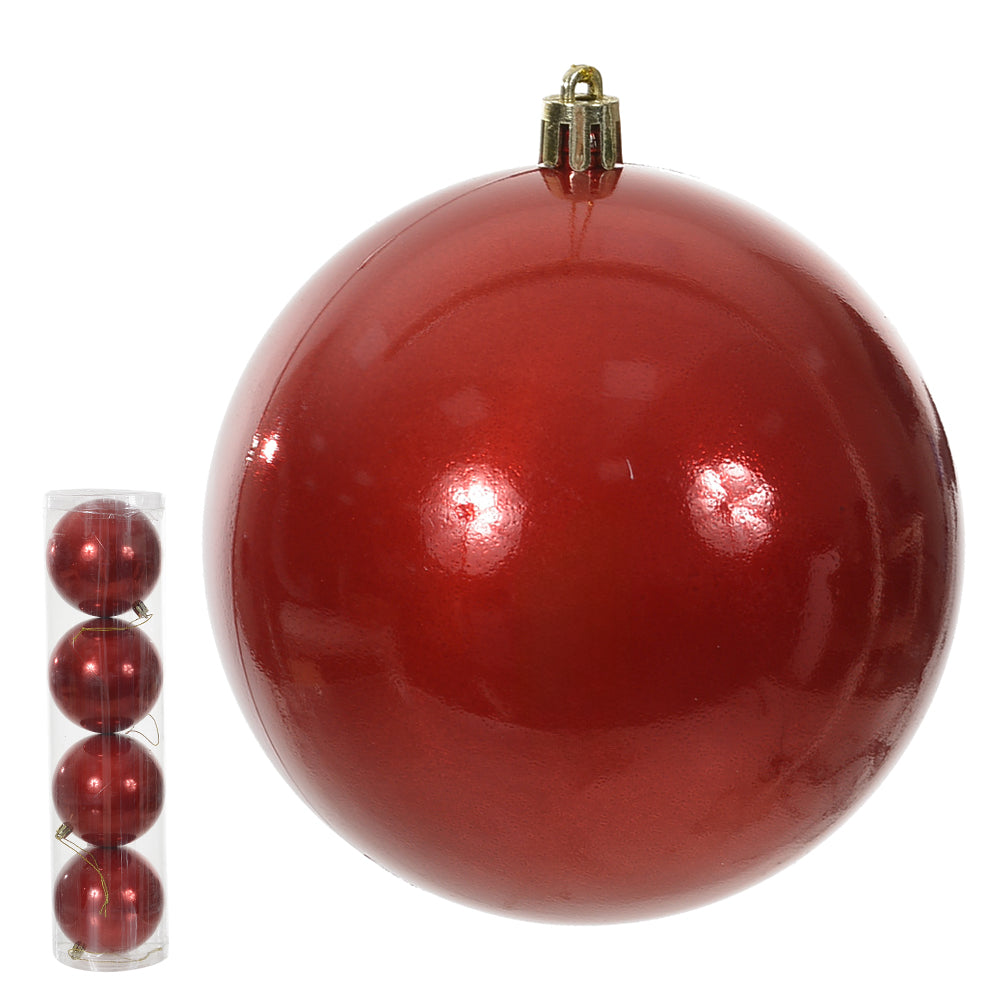 TUBO BOLAS VERMELHAS 10 CM COM 4 UNIDADES
