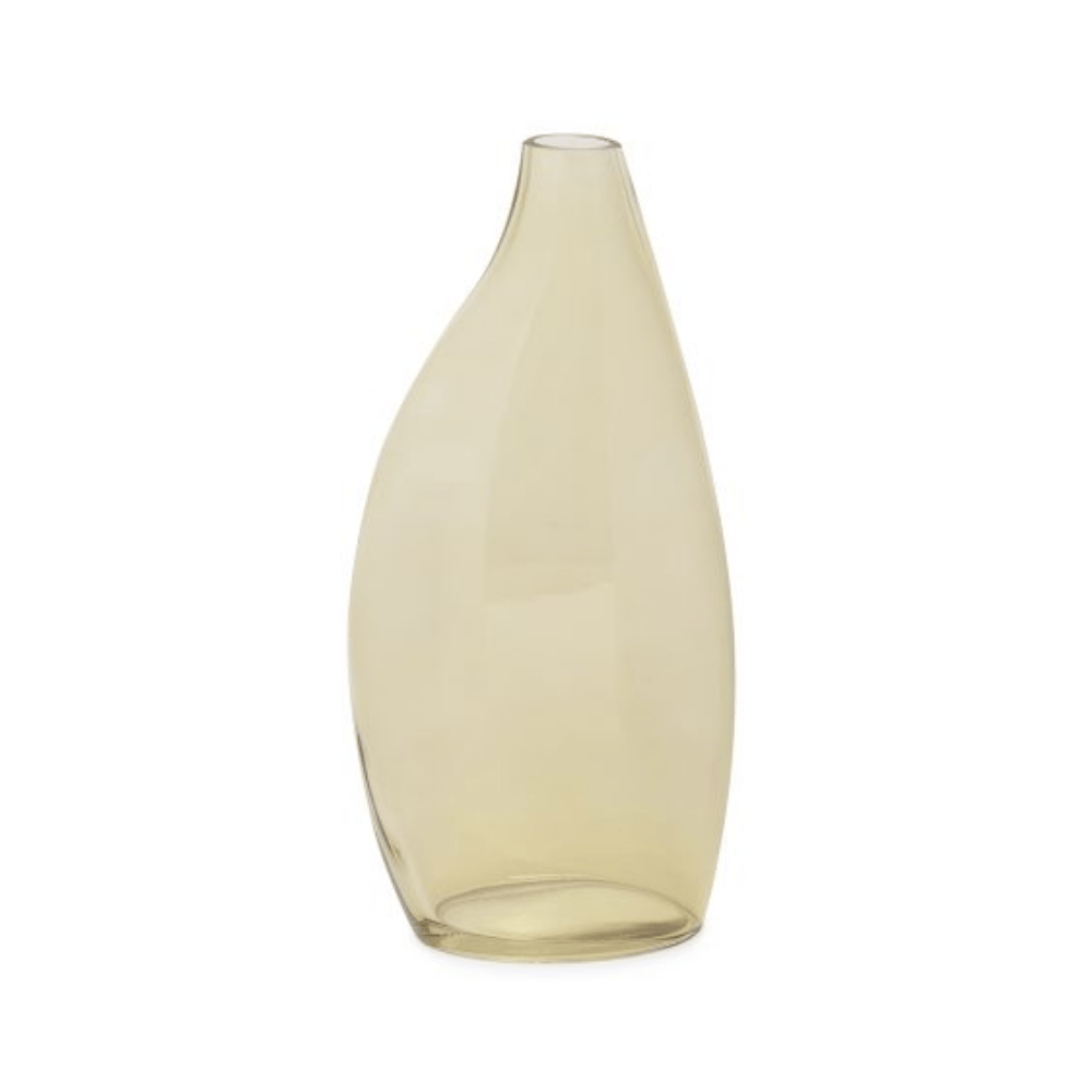 Vaso decorativo produzido em vidro tonalizado âmbar, com design assimétrico e linhas suaves que criam um visual elegante e contemporâneo. A transparência levemente aquecida da peça valoriza arranjos naturais, folhagens e flores secas, além de funcionar perfeitamente como peça solo em composições modernas. Um item versátil para complementar salas, aparadores e ambientes com estética minimalista.