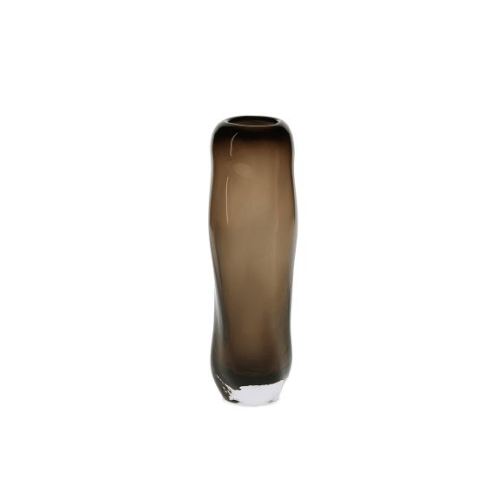 Vaso de vidro fumê com design alongado e linhas suaves que criam um visual moderno e elegante. Seu formato estreito é ideal para arranjos de hastes longas, enquanto o acabamento fumê adiciona profundidade e sofisticação ao ambiente. Uma peça decorativa versátil, perfeita para destacar mesas, aparadores, estantes e composições contemporâneas.